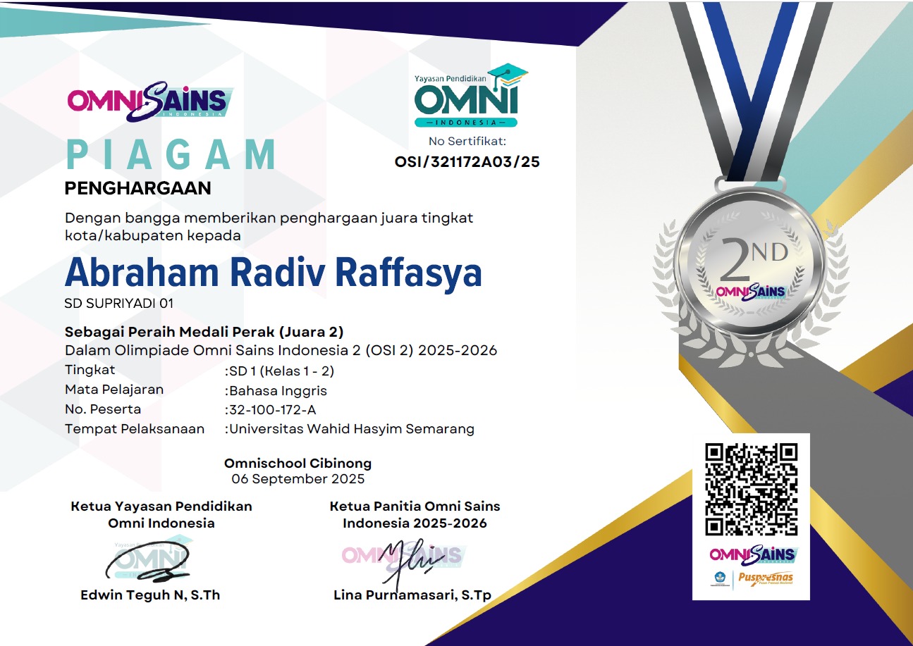 OLIMPIADE OMNI SAINS INDONESIA 2 (OSI 2) 2025-2026 TK SD 1, MAPEL BAHASA INGGRIS