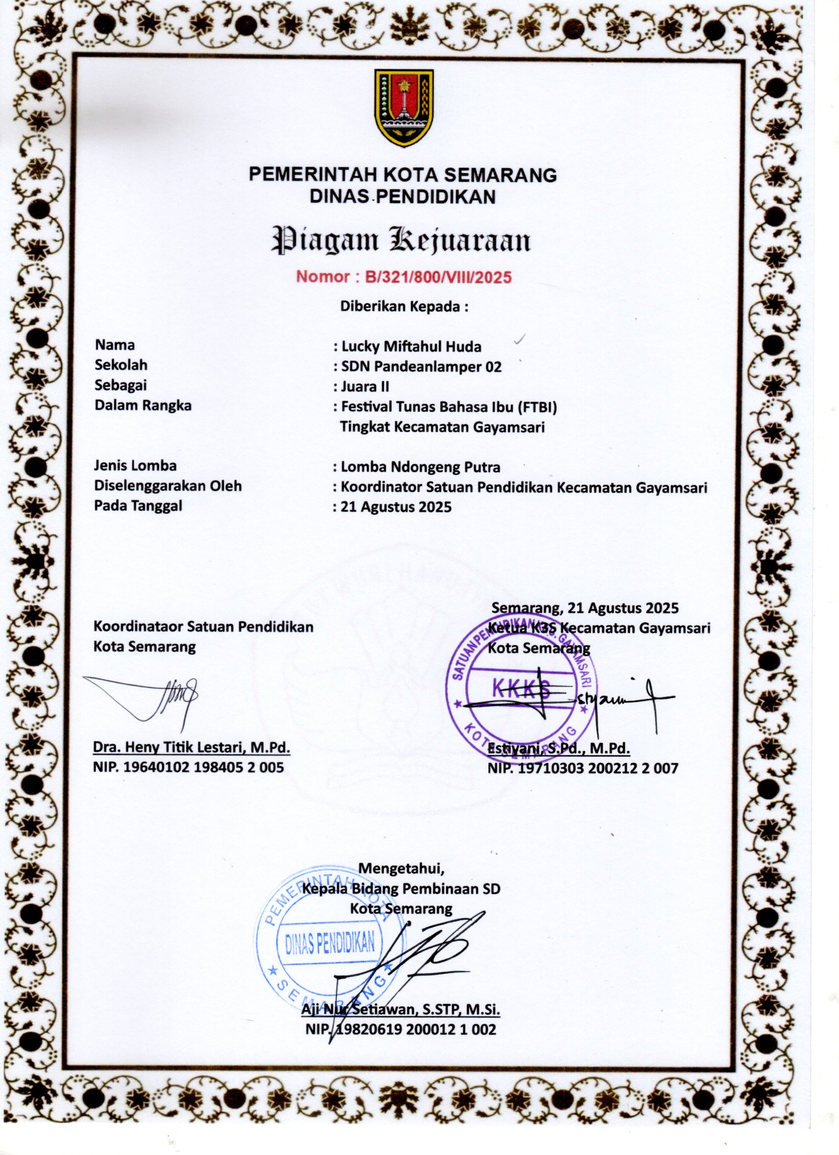 Kepala Bidang Pembinaan SD Kota Semarang