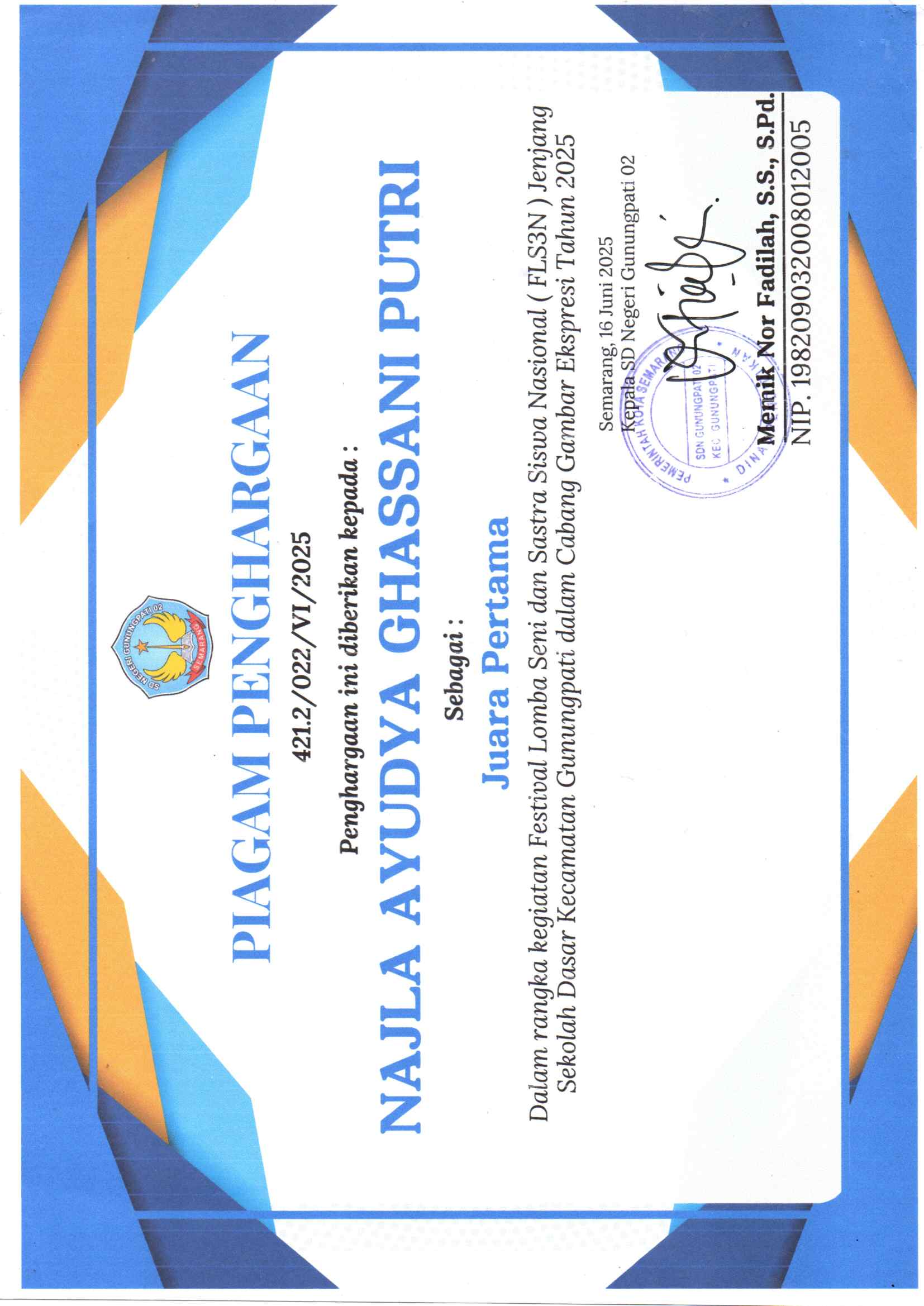 Kepala Sekolah SDN Gunungpati 02