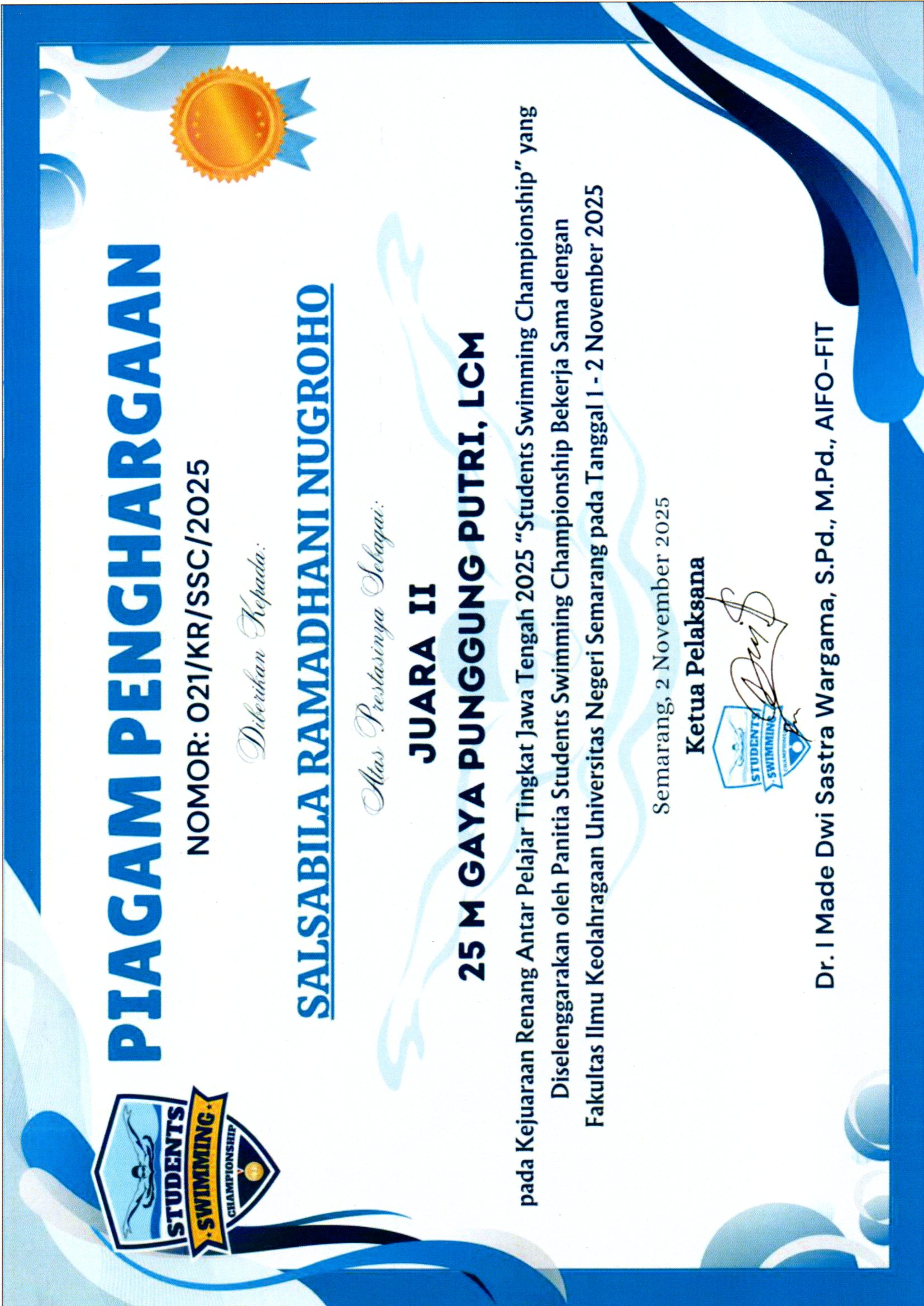 Panitia Students Swimming Championship Bekerja sama dengan Fakultas Ilmu Keolahragaan Universiats Negeri Semarang