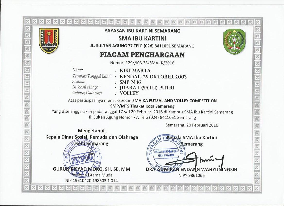 DISOSPORA KOTA SEMARANG DAN SMA IBU KARTINI SEMARANG