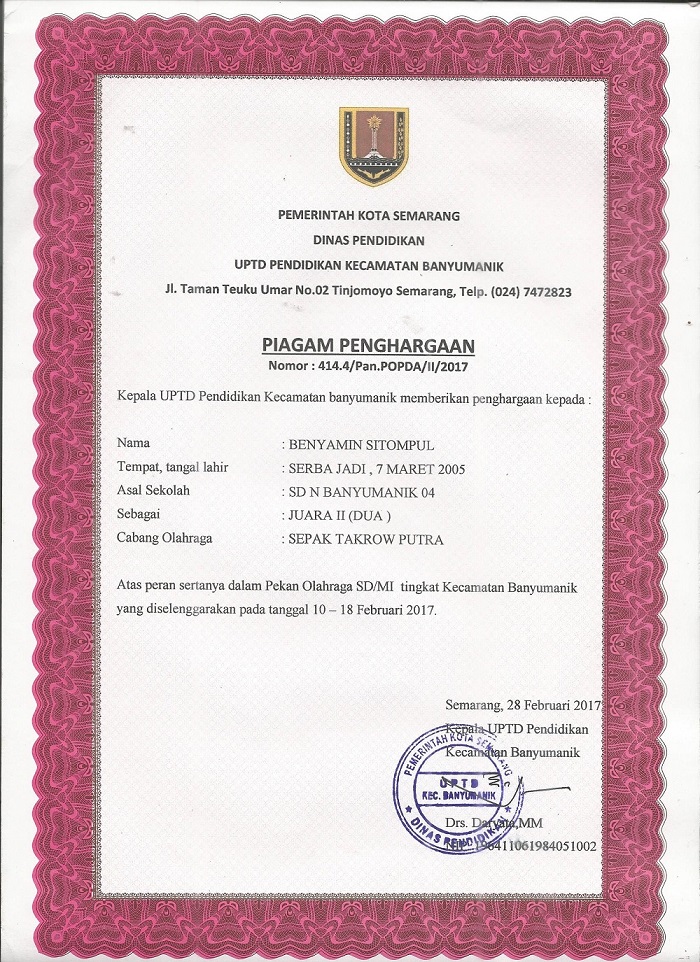 Kepala UPTD Pendiidikan Kecamatan Banyumanik