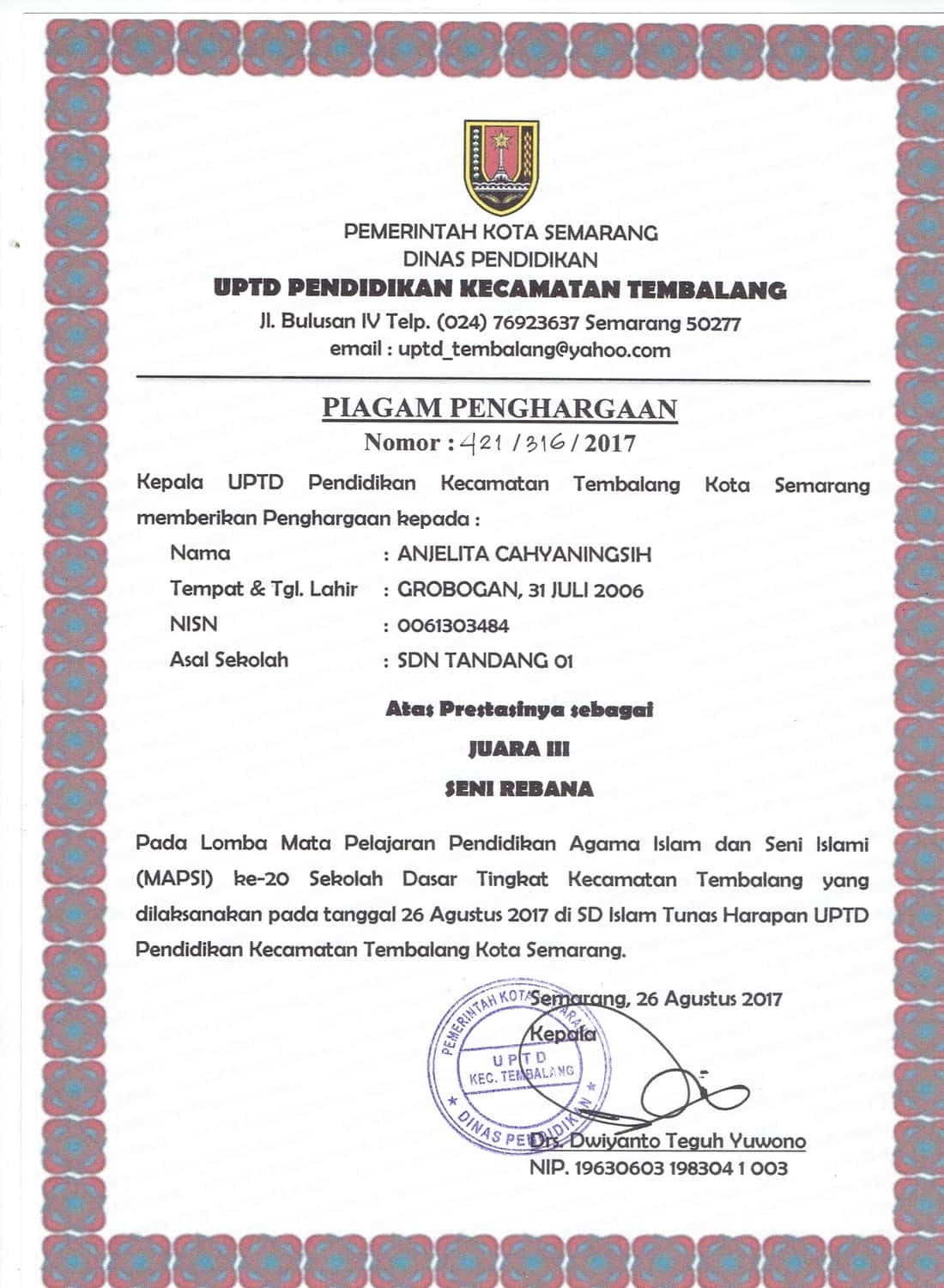 KEPALA UPTD PENDIDIKAN KECAMATAN TEMBALANG
