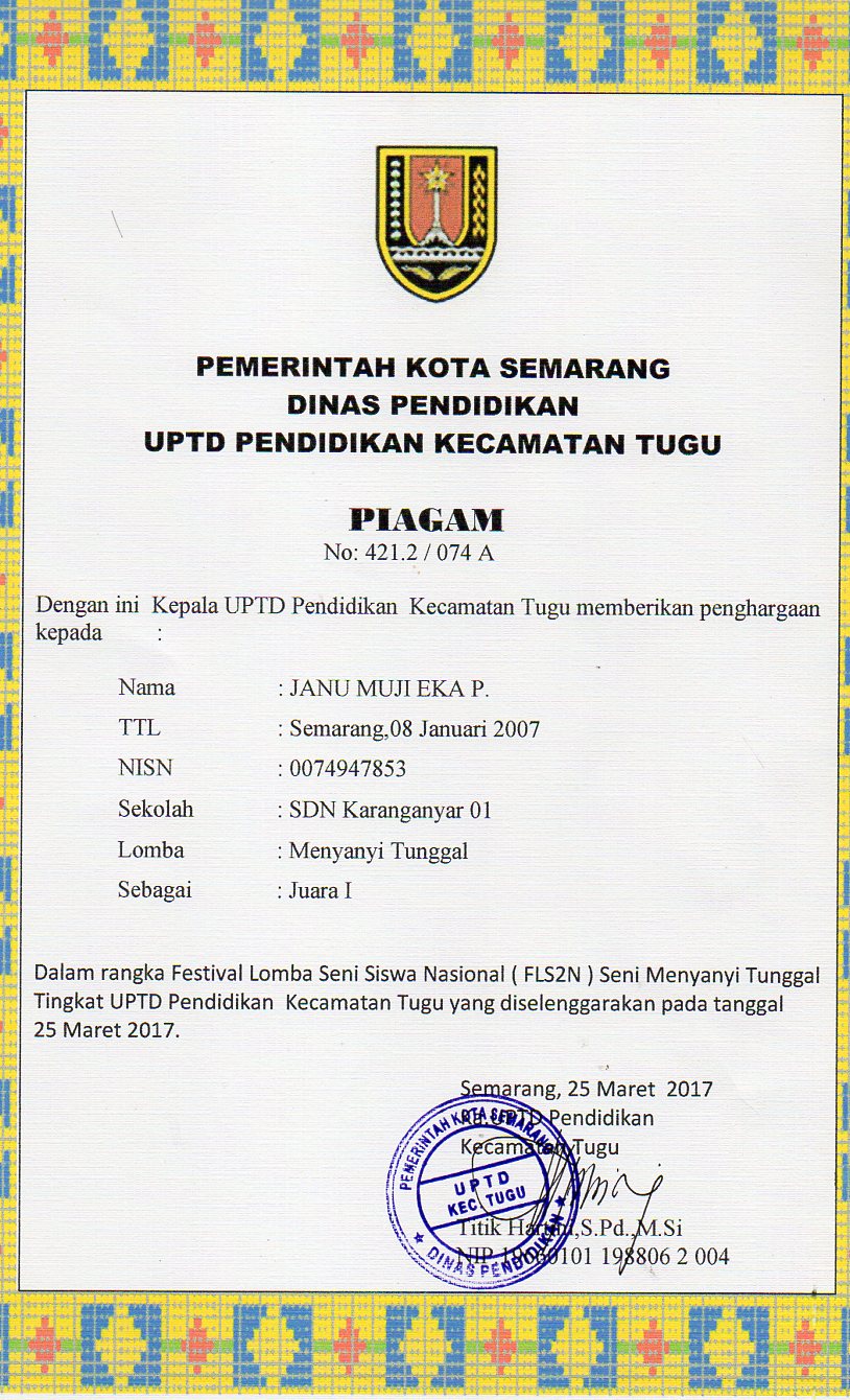 Kepala UPTD Pendidikan Kecamatan Tugu