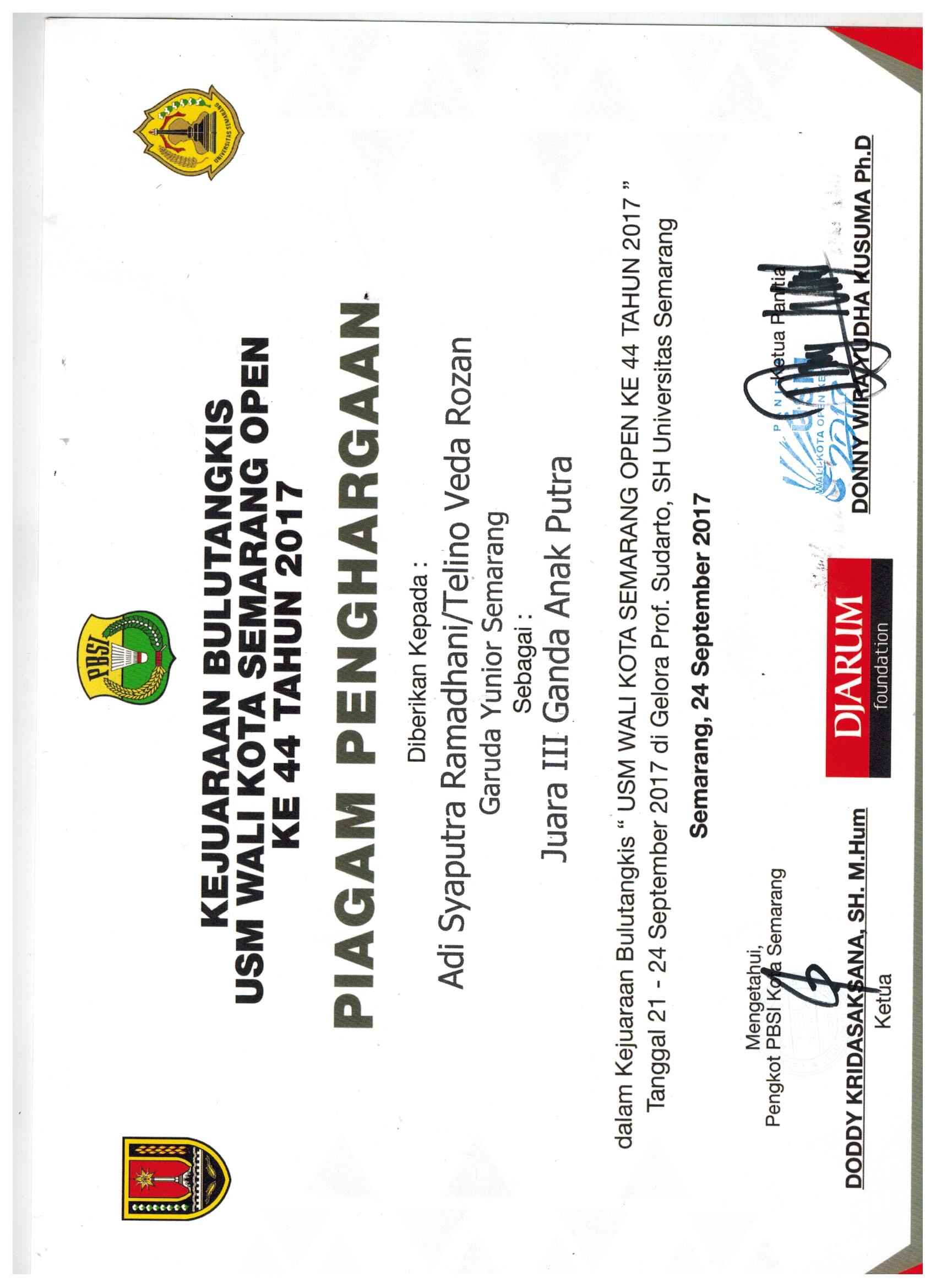 KEJUARAAN BULUTANGKIS "USM KOTA SEMARANG OPEN KE 44 TAHUN 2017