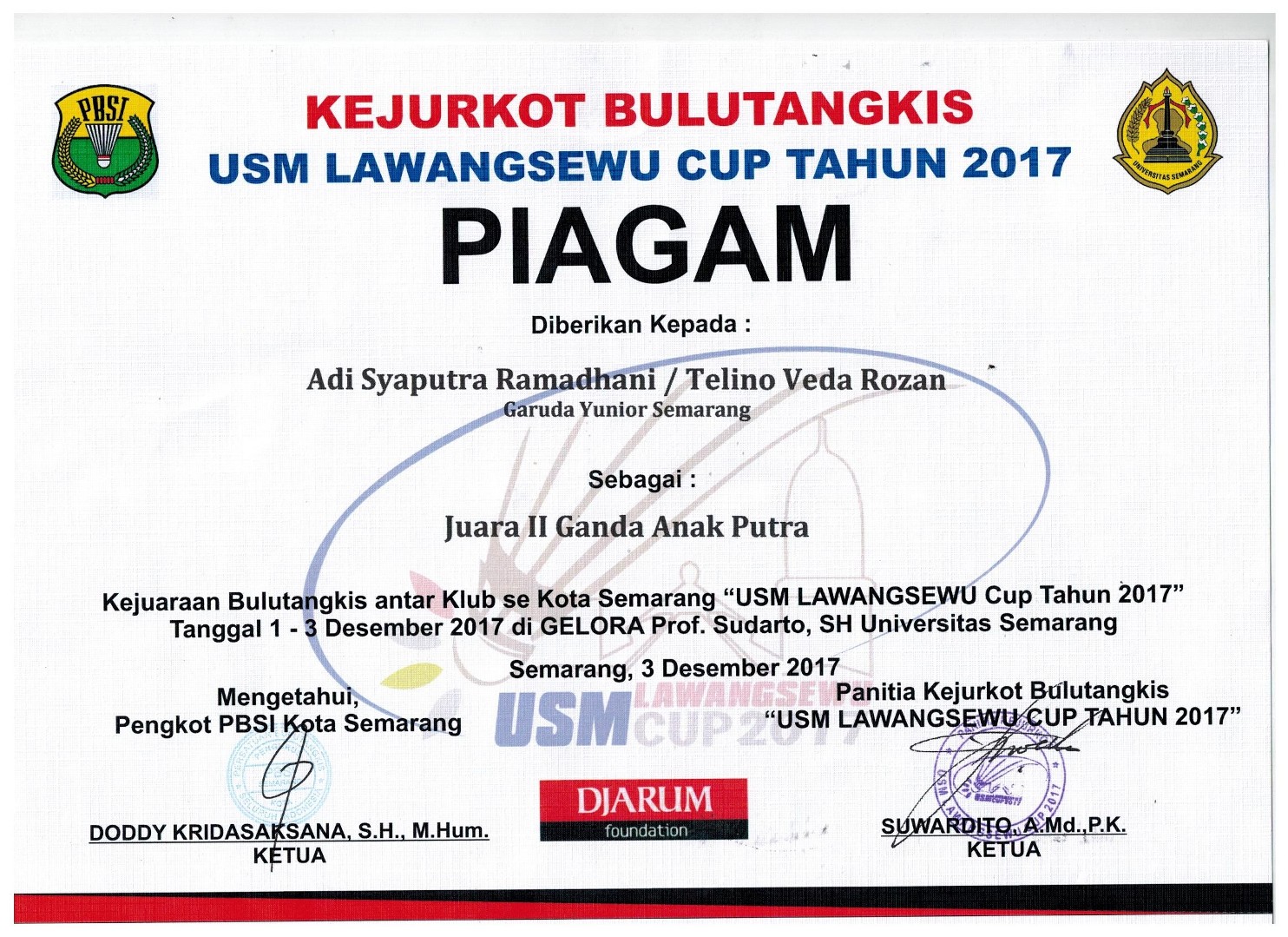 KEJUARAAN BULUTANGKIS ANTAR KLUB SE KOTA SEMARANG " USM LAWANGSEWU CUP TAHUN 2017"