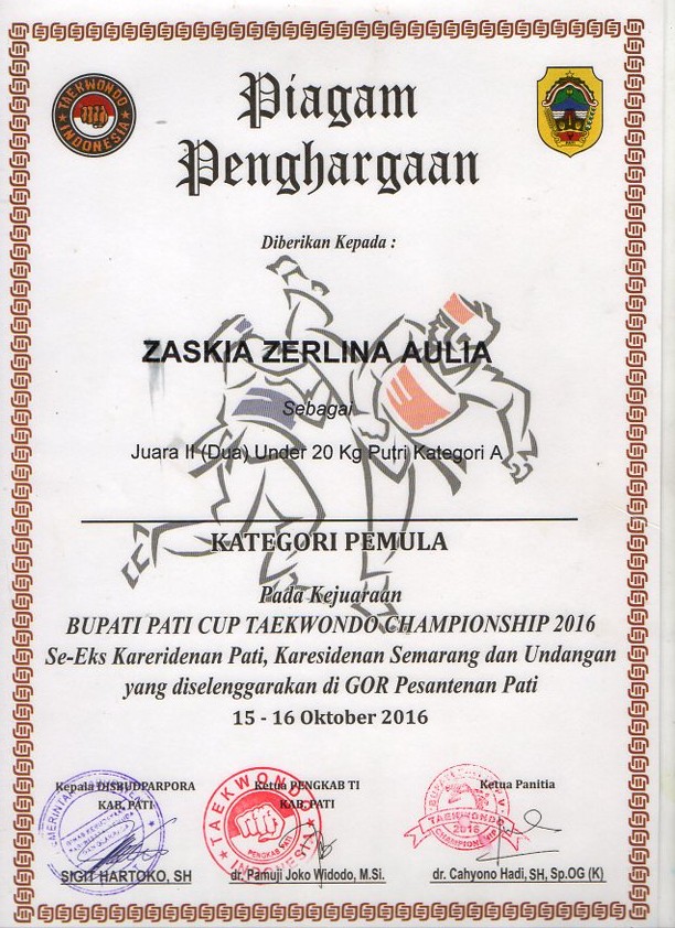 Under 20 Kg Putri Katagori A Pemula Dalam Kejuaraan Bupati CUP Teakwondo Championship 2016