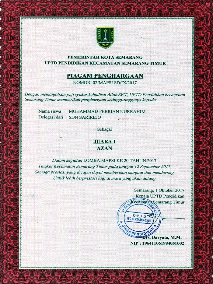 Kepala UPTD Pendidikan Kecamatan Semarang Timur