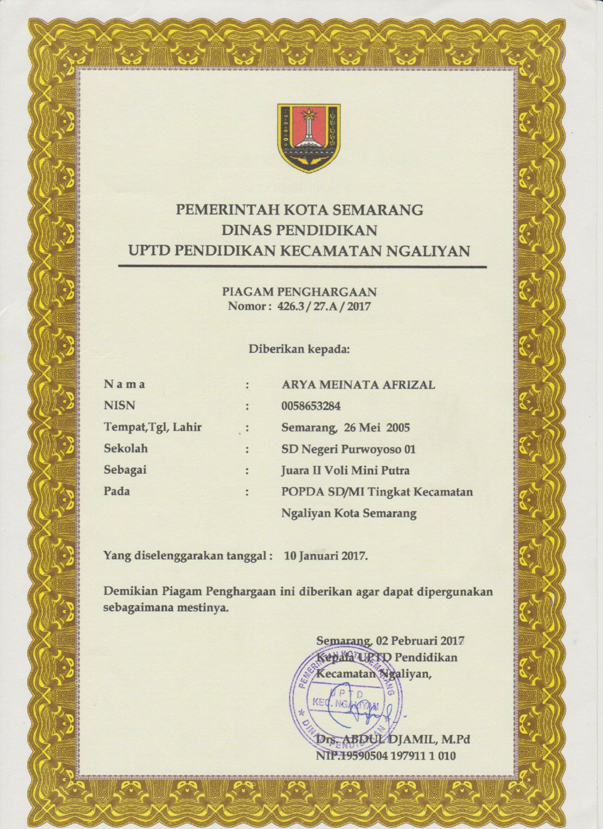 Kepala UPTD Pendidikan Kecamatan Ngaliyan